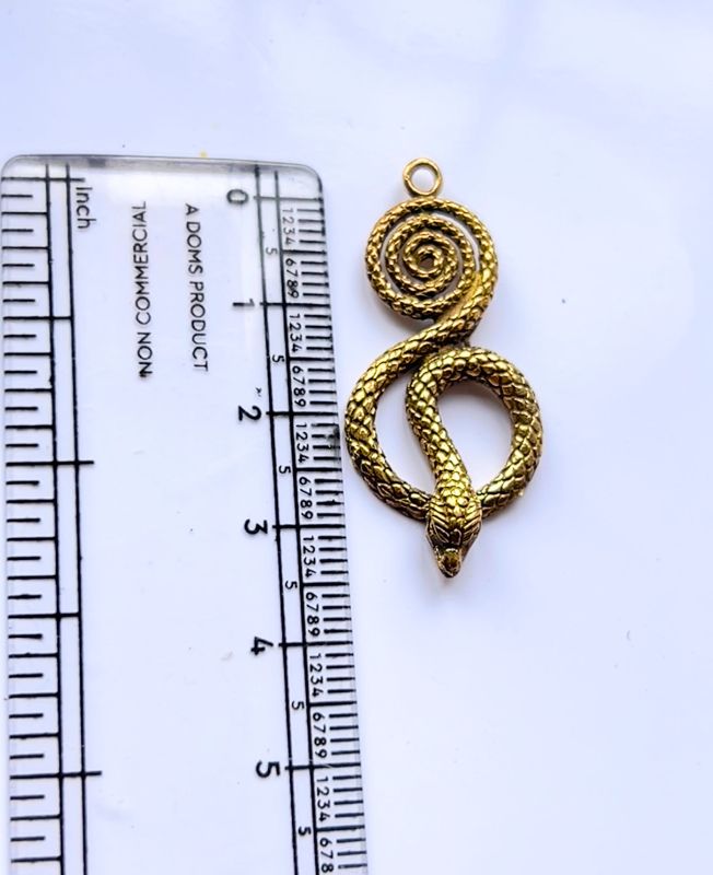 This spiral serpent brass pendant features an intricate coiled design with finely detailed scales, capturing the elegance and symbolism of the snake. The flowing spiral top merges seamlessly with the lifelike curves of the body, giving it both artistic flair and a natural feel.