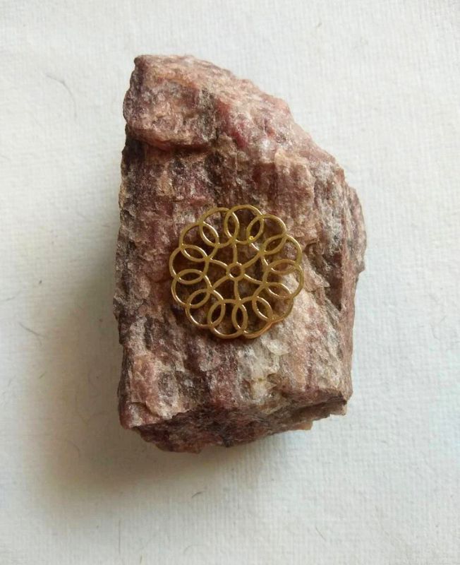 A graceful brass charm shaped like a blooming petal wheel, perfect for macrame, earrings, or delicate spiritual jewelry with symbolic symmetry.