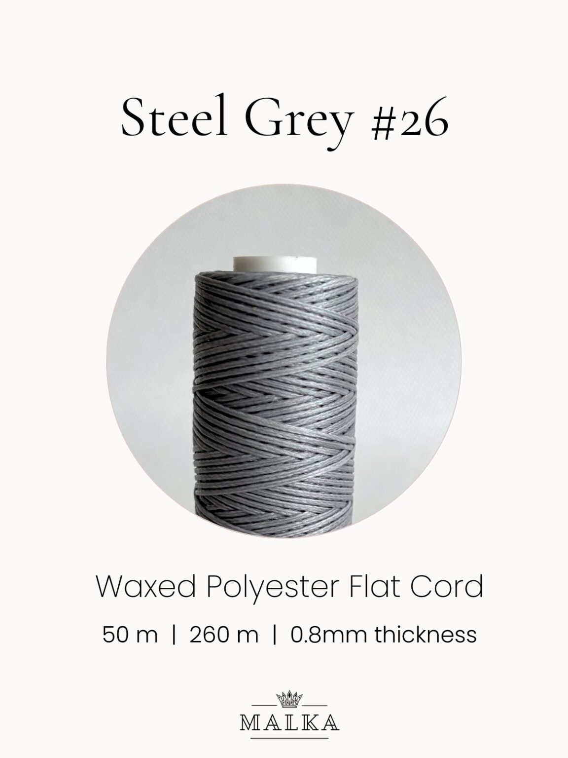 0.8mm Flat Waxed Macrame Cord – Steel Grey (No. 26)