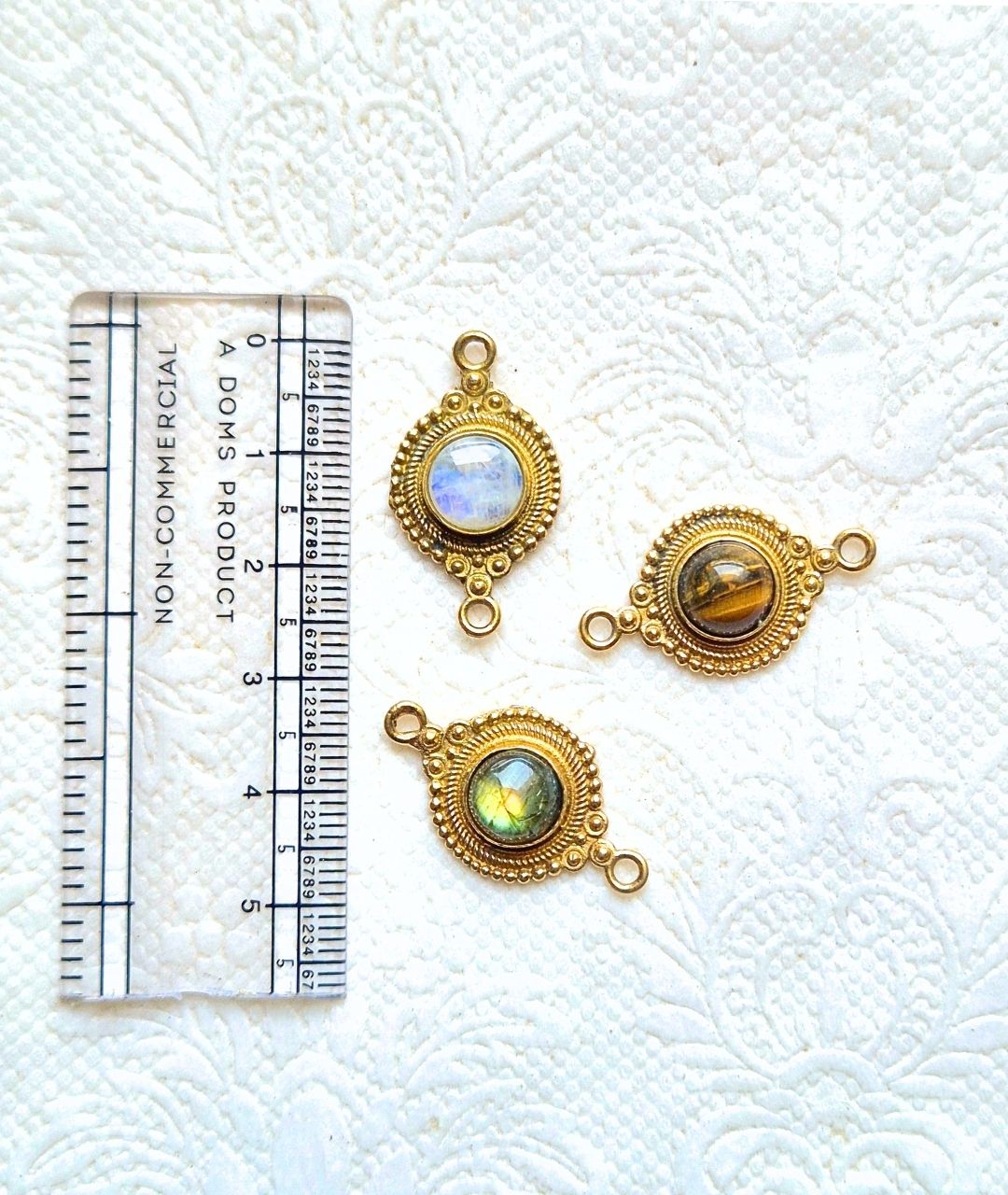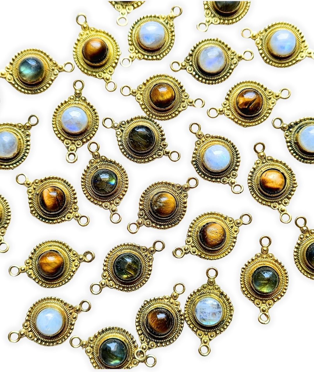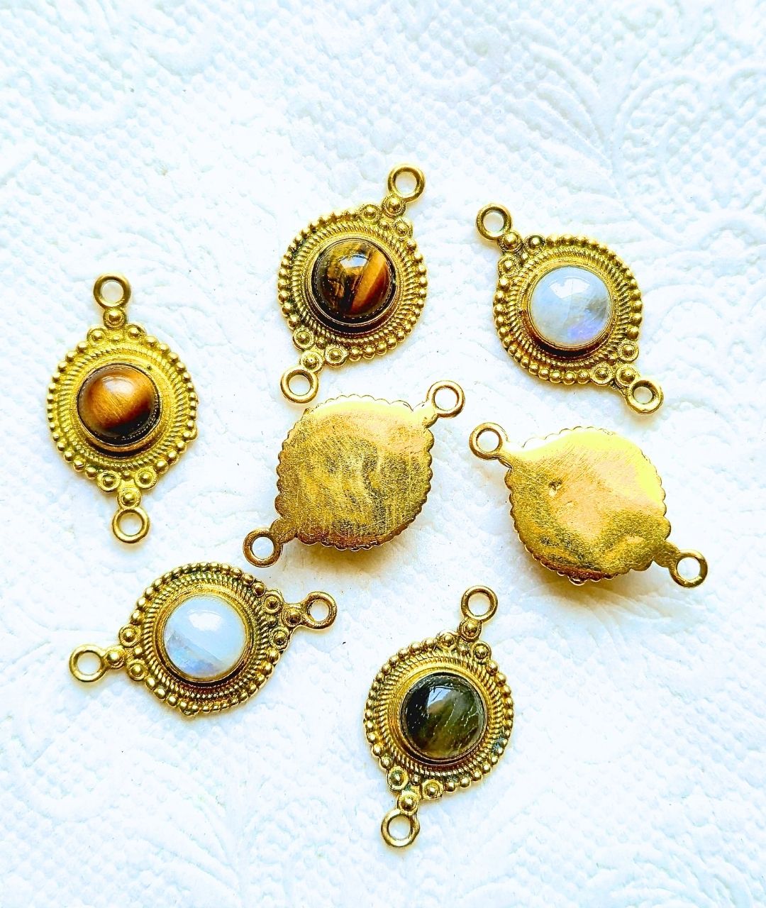 Set of premium brass connectors with real gemstone centers – perfect for jewelry and macrame projects.