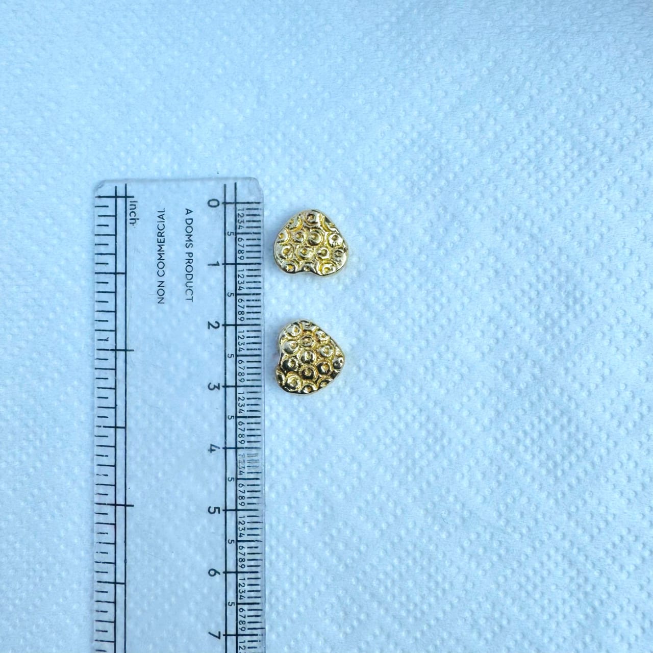 This heart shaped brass charm features a softly rounded silhouette with a raised bubble-textured surface, giving it a handcrafted, slightly organic look. The gold-tone finish highlights the texture, adding warmth and subtle shine without overpowering delicate designs.