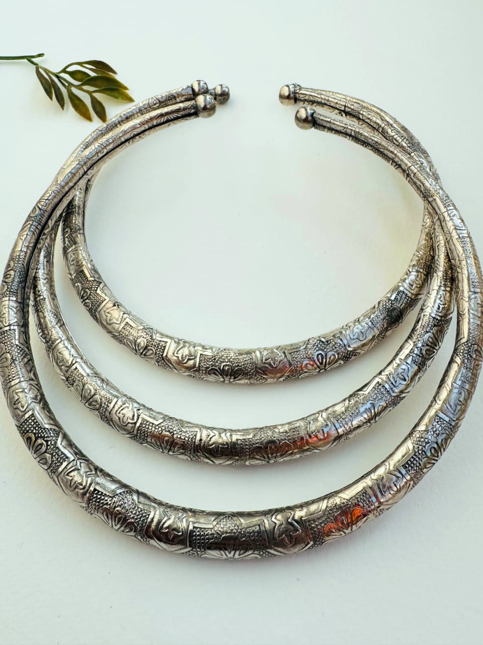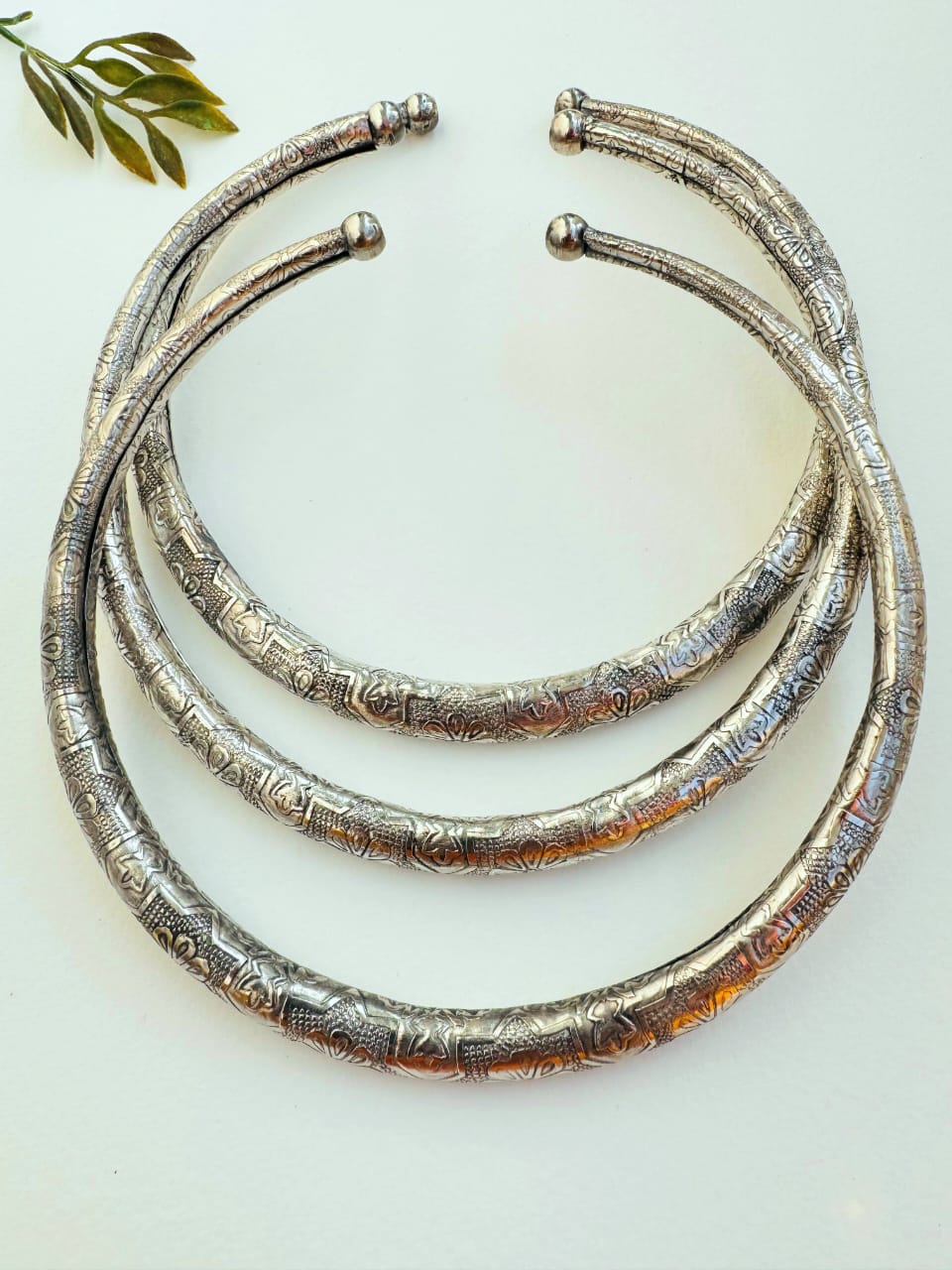 This refined choker set includes three handcrafted brass pieces, each designed with a clean, minimalist silhouette and a smooth polished surface. The high shine finish gives the set a modern, elegant look, while the rounded ball ends provide both comfort and a secure fit around the neck.